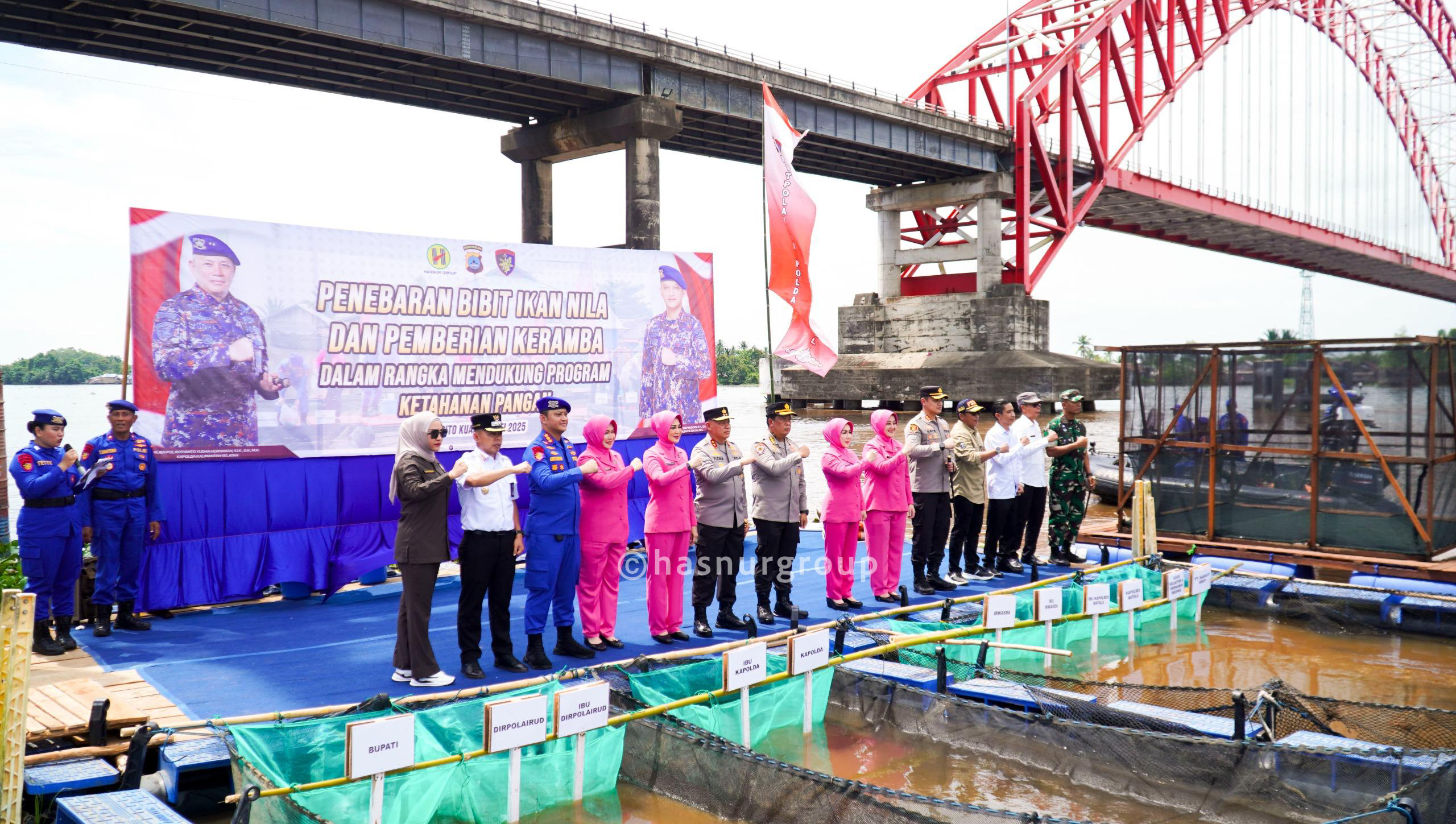PT Hasnur Group Indonesia menyalurkan bantuan tiga unit keramba ikan serta 200 paket sembako kepada masyarakat di Desa Bagus, Kecamatan Marabahan, Kalimantan Selatan. Bantuan ini merupakan bagian dari sinergitas antara PT Hasnur Group dengan Direktorat Kepolisian Perairan dan Udara (Ditpolairud) Polda Kalimantan Selatan dalam program bakti sosial bertajuk “Sambang Nusa Presisi” yang digelar di Jembatan Rumpiang, Kalimantan Selatan pada Rabu (7/5/25).